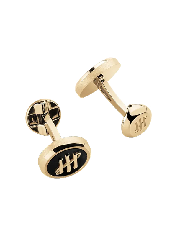 Запонки, сталь, IP-покрытие позолотой, оникс