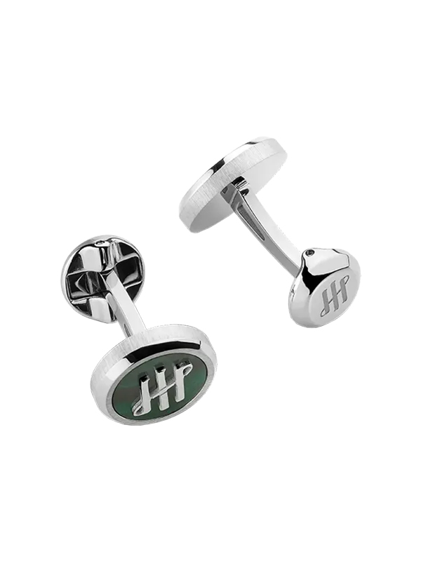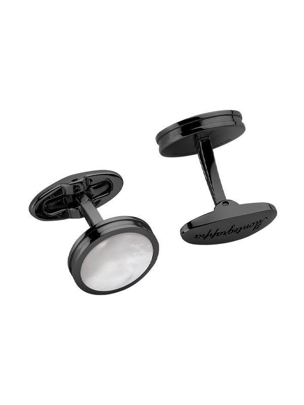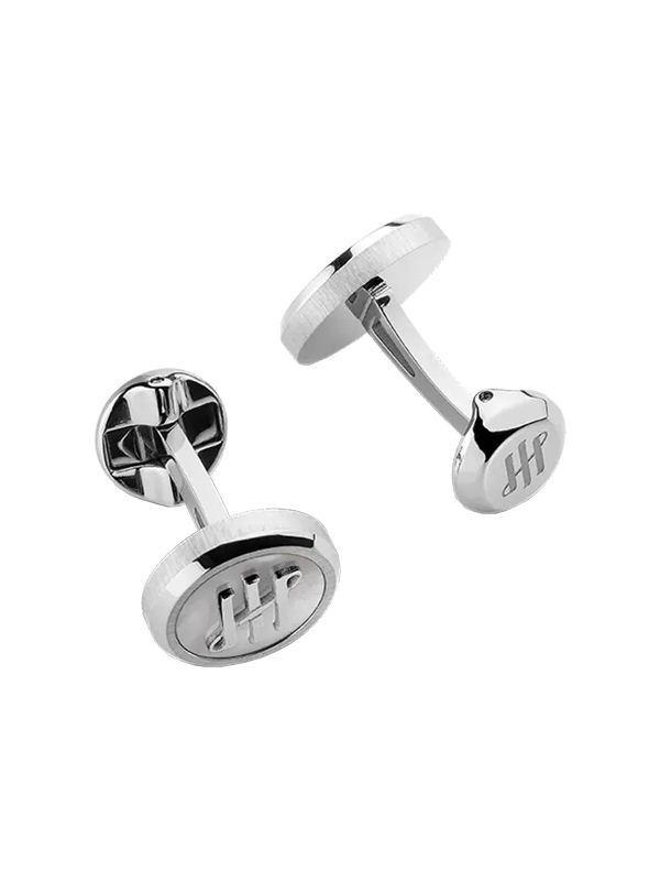 Запонки, сталь, IP-покрытие палладием, перламутр
