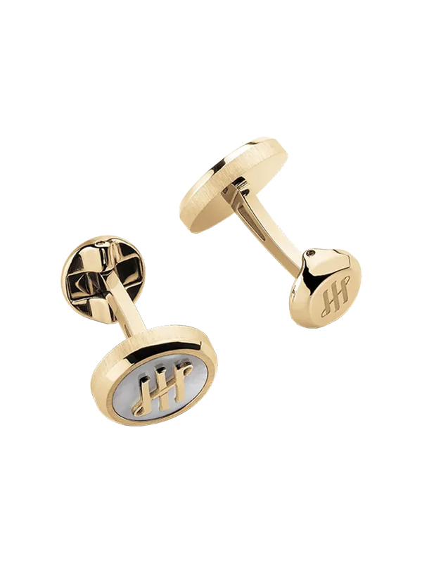 Запонки, сталь, IP-покрытие позолотой, перламутр