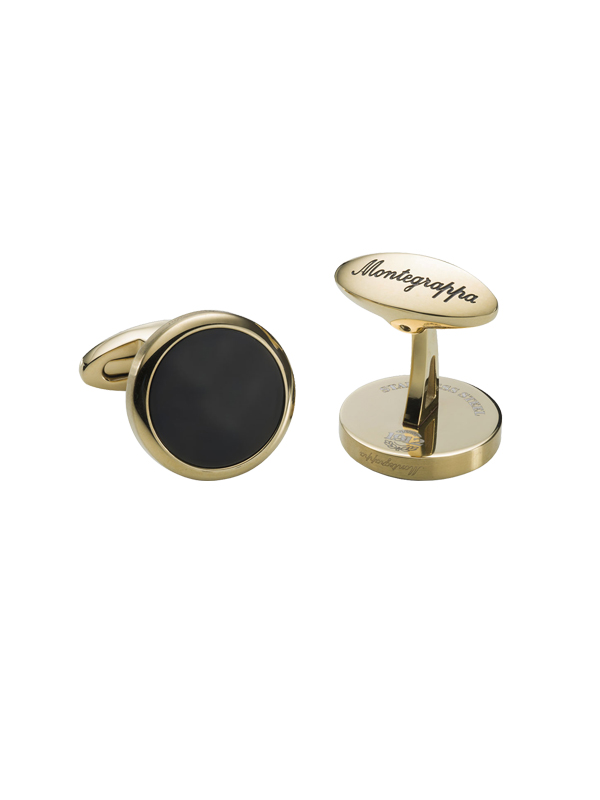 Запонки, сталь, черное IP-покрытие, позолота