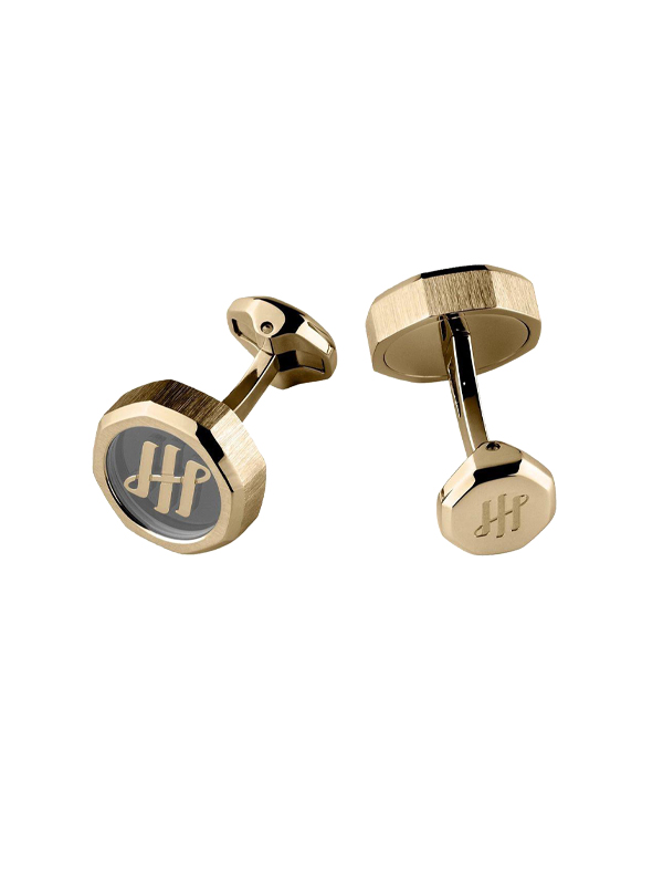 Запонки, сталь, позолота, сапфировое стекло